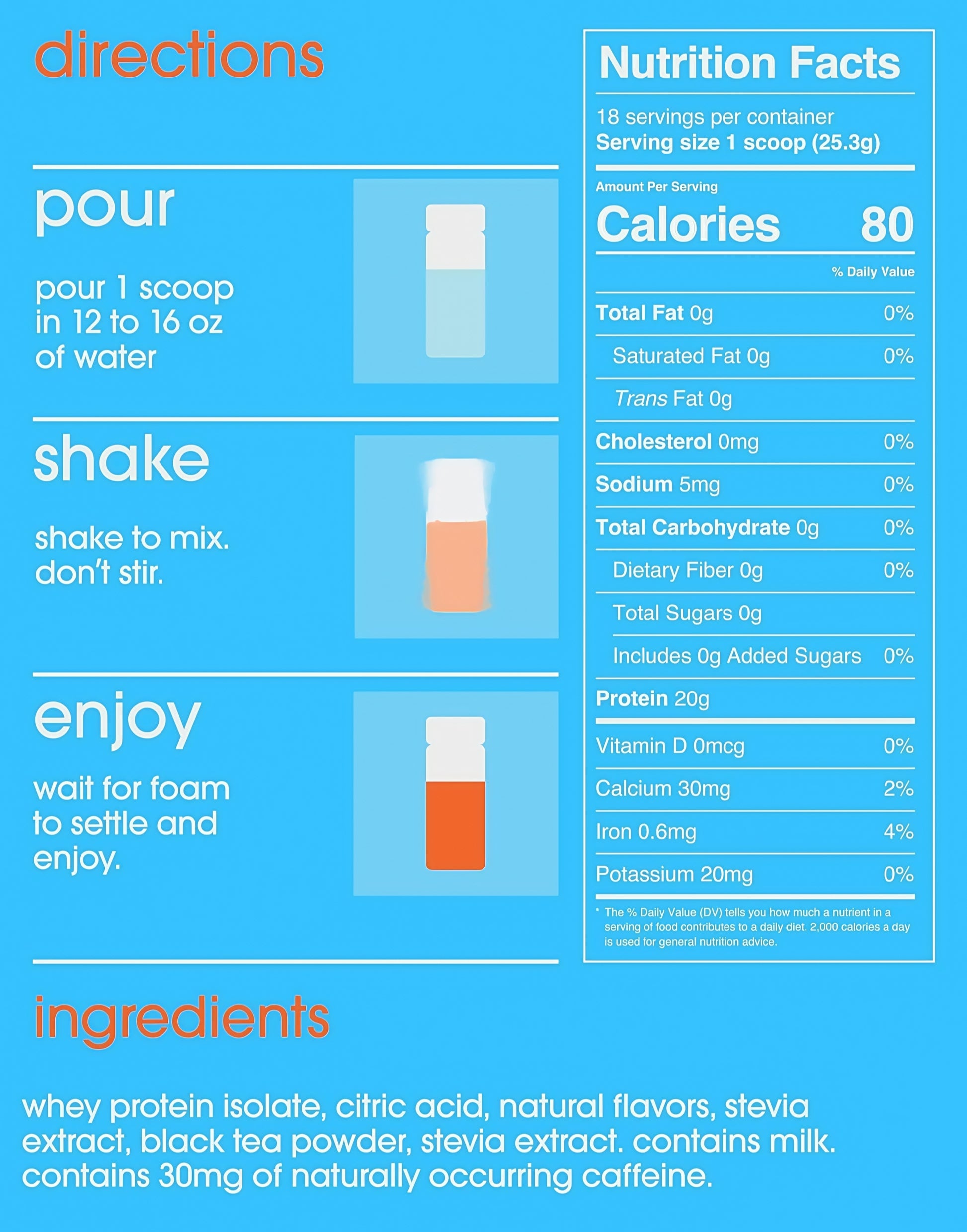 • refreshing taste: made without any artificial flavors, our clear protein flavors use natural flavor and colors sourced from pure fruit and vegetable powder.